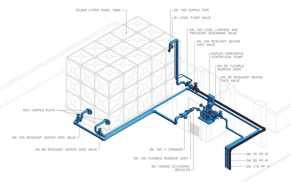 Water supply distribution of a High-Rise Residential Condominium project in Davao. Disclaimer: Ownership of BIM model only and not the plumbing design.